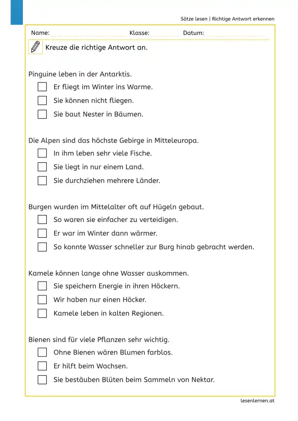 Einfache Übung zum Satzverstehen.