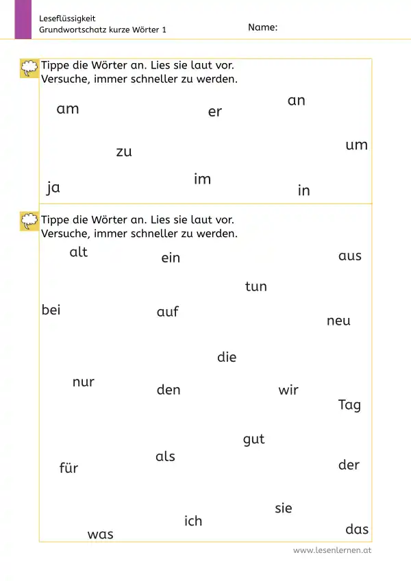 Diese Materialien üben häufige Wörter und trainieren den Sichtwortschatz.