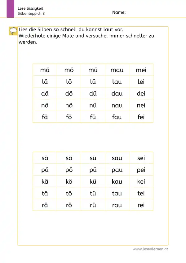 Übe mit diesen Arbeitsblättern häufige Silben.