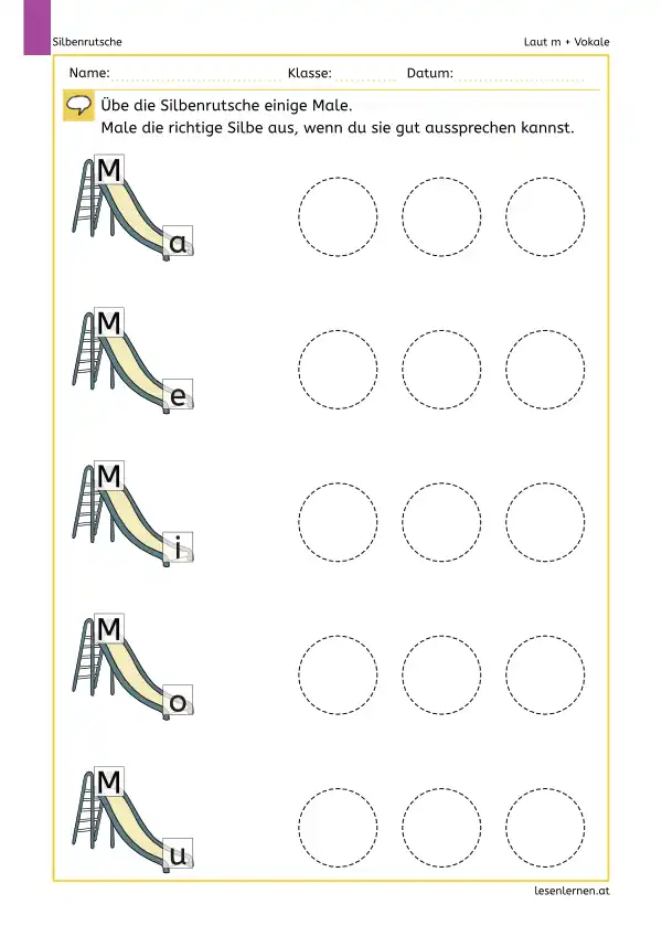 Silbenrutsche: Buchstaben / Laute zu Silben verbinden