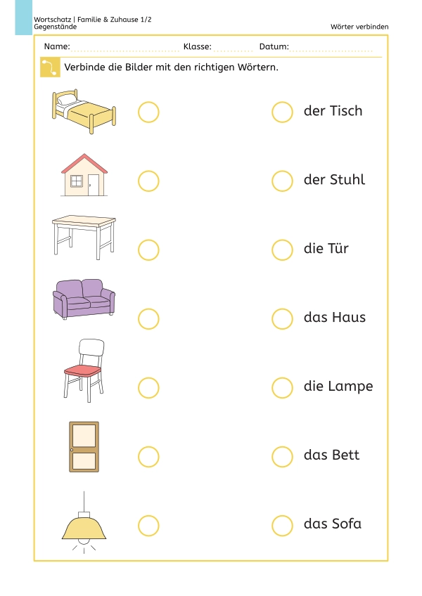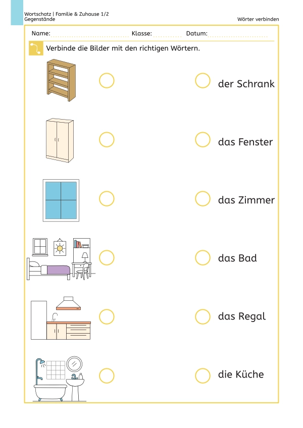 Wortschatz Familie & Zuhause: Wörter verbinden 1