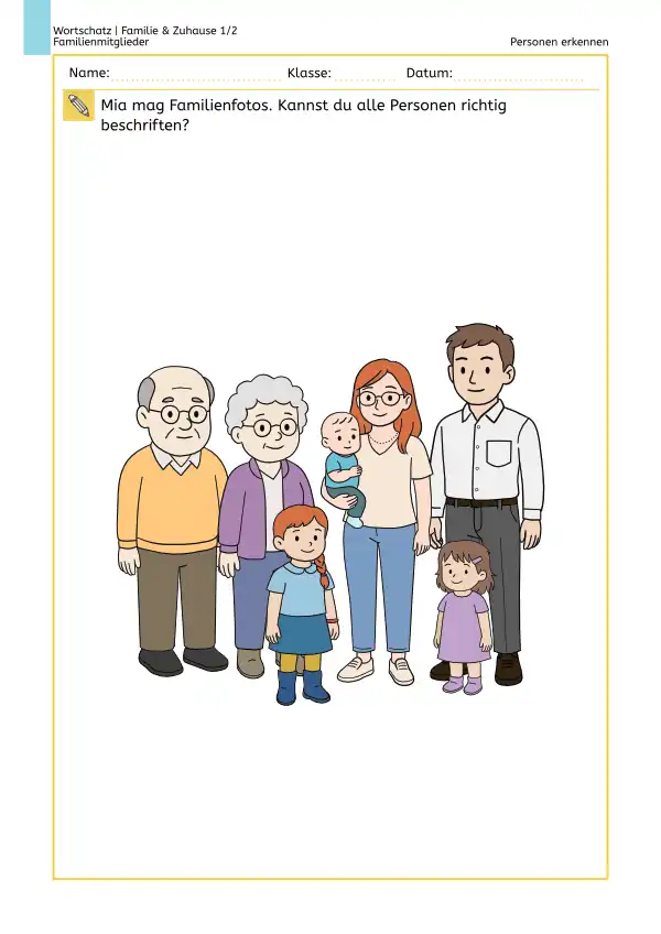 Arbeitsblätter – Familienmitglieder kennenlernen